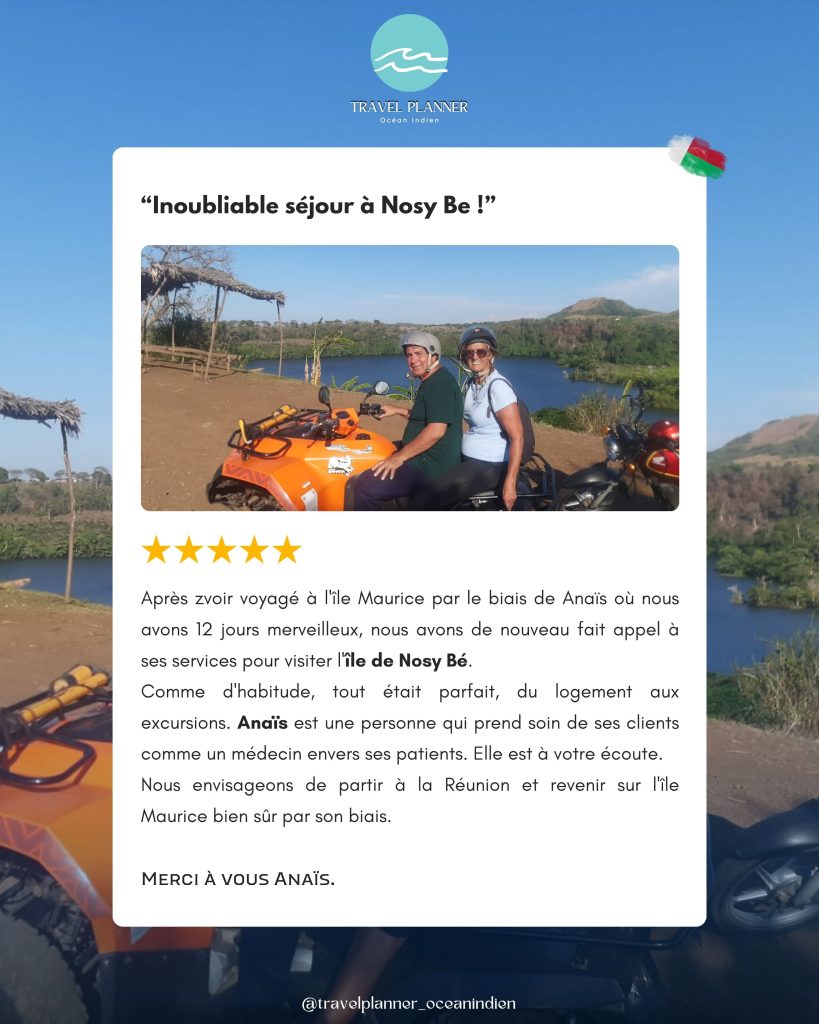 En somme, le voyage de noces d’Anne et Bruno à l’île Maurice a été une véritable aventure qui a su répondre à leurs attentes. Ils ont pu se détendre, se ressourcer, explorer des horizons nouveaux, rencontrer des gens formidables et créer des souvenirs uniques. Leur expérience à l’île Maurice a été une parfaite fusion de romance, d’aventure et de découverte, rendant leur lune de miel inoubliable.